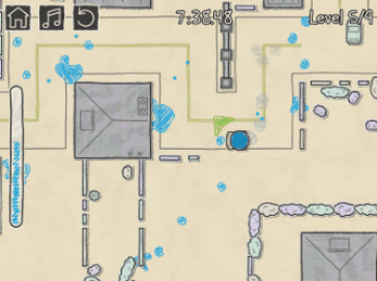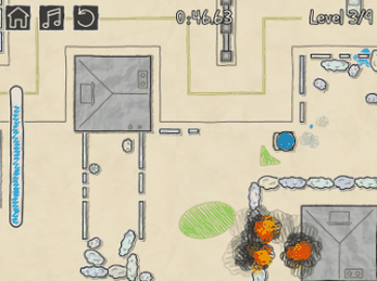 In the streets of paper city, drive with a water container full to overflowing. Will you reach the fire without spilling up all the water on the ground?